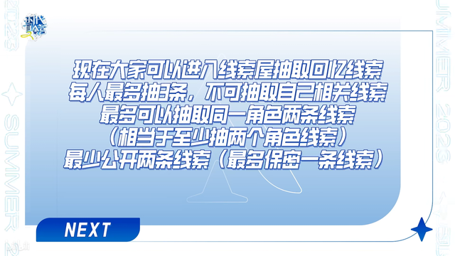 每个人按照顺序轮流进去抽线索,把自己怀疑人的线索拿上三张