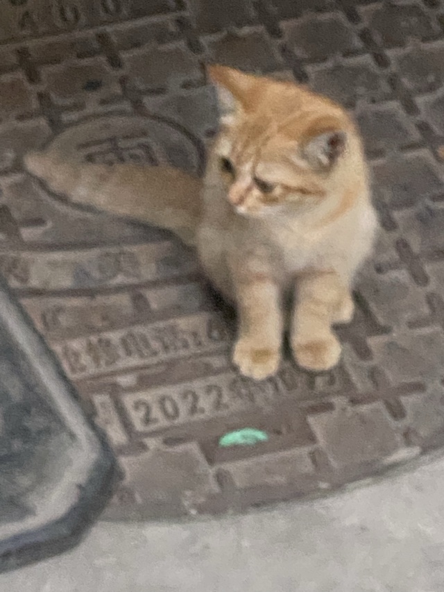那一只毛色亮丽的小橘猫,圆溜溜的眼睛闪烁着无辜的光芒,小巧的鼻子微微抽动,仿佛在探寻着世界的好奇。它慵懒地蜷缩水井盖子上,微微蜷缩的双脚让人心动不已,一身橘色的绒毛在光线中显得格外柔和,都透着无限的可爱与生机。