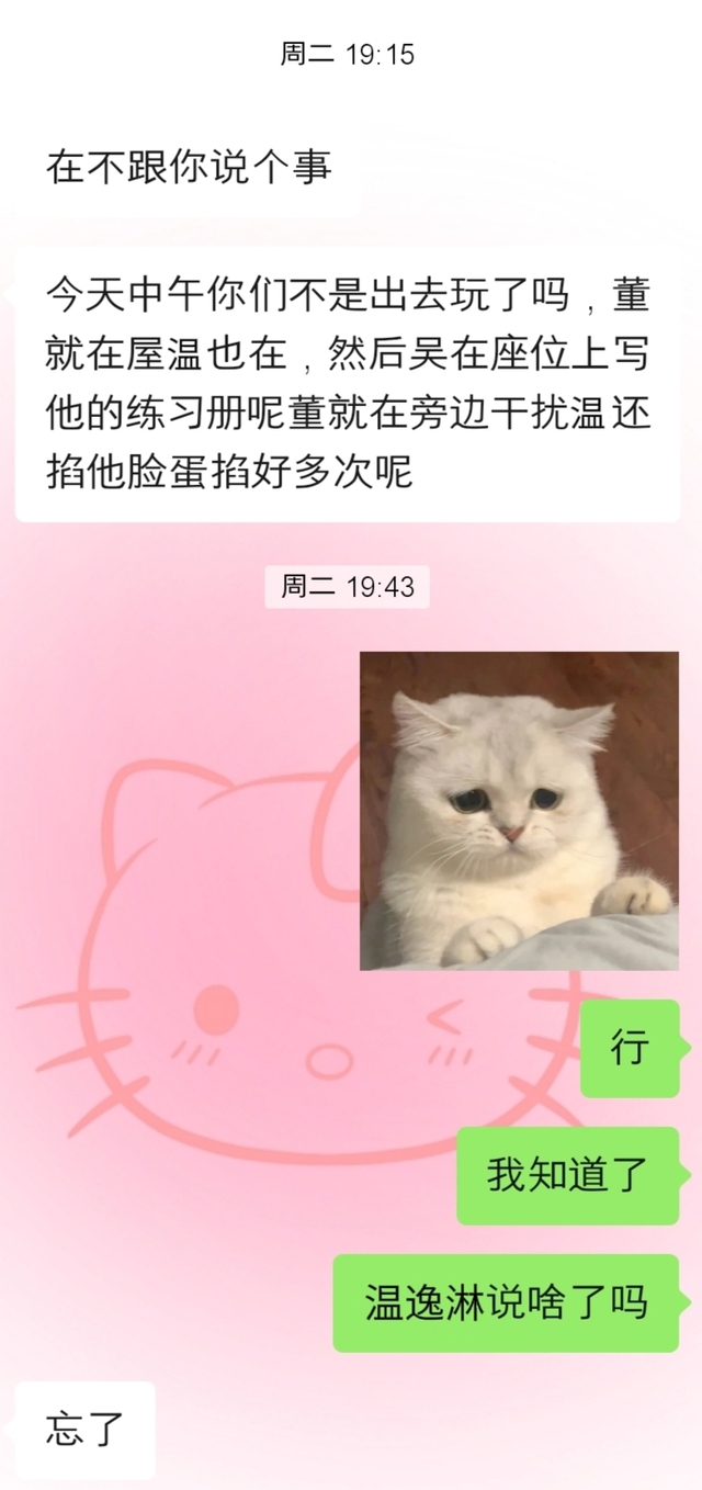 [事情经过:中午都出去活动,董恣在班级里不出去,温逸淋在班级写卷子,董恣就走过来掐温逸淋脸,不止一下]有一个暗恋跨屎的小女孩先碎了。
