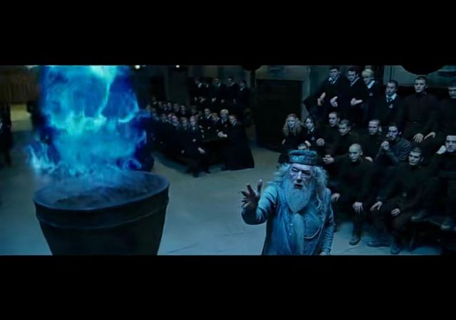 邓布利多校长缓缓靠近火焰杯