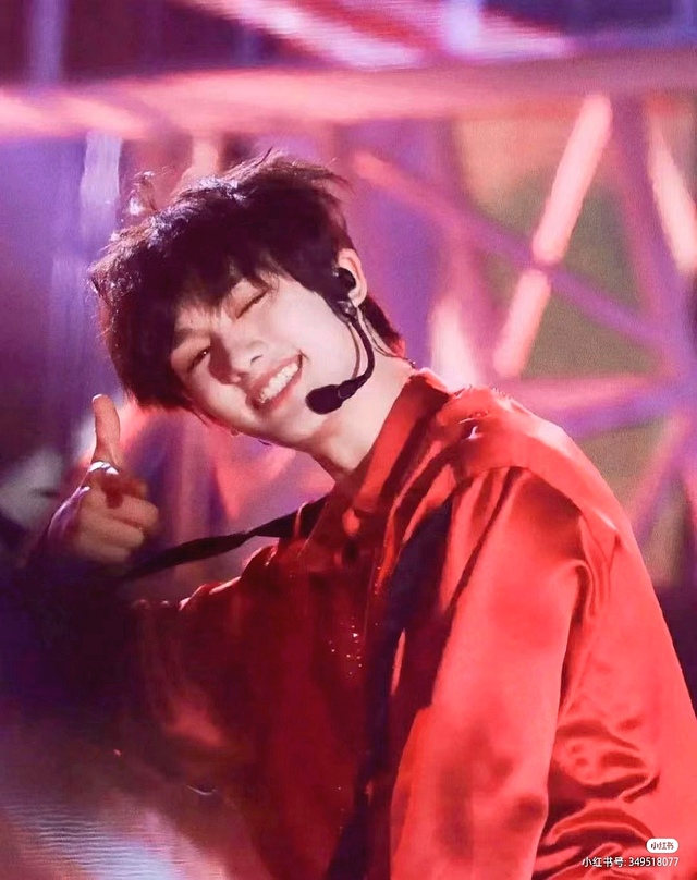 丁程鑫一袭红衣,在人群中格外耀眼。