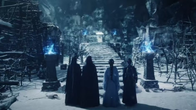 刹那间,文潇、赵远舟与裴思婧只觉脚下寒意迅速蔓延,转瞬之间双脚已被坚冰死死冻结于地面,动弹不得。