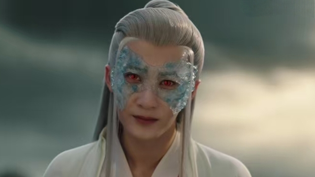 就在这一片水天相连之处,一个白衣白发、戴着银色面具的男子悠然立于浪尖。