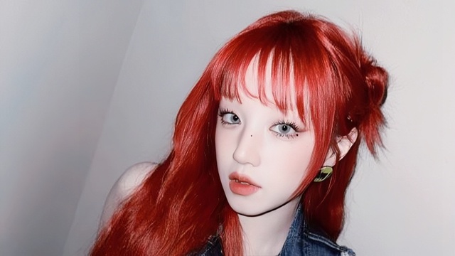 这次姜梨染了红发,无论在室内还是室外,都是很耀眼的存在,让人无法忽视