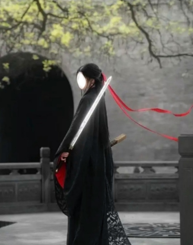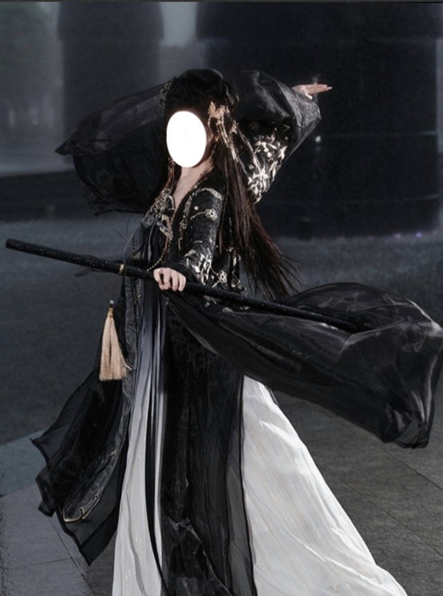 女帝枯荣穿着一套黑色便衣,服装——