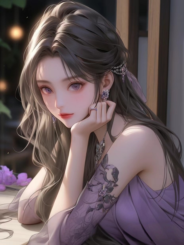 那倾国倾城之姿仿佛令周围一切颜色都为之暗淡了似的,一身紫裙,衬出恬静淡雅之风。