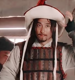 笋粉(别抢我家顺)“头戴一顶青纱抓角儿头巾,脑后两个白玉圈连珠鬓环。身穿一领单绿罗团花战袍,腰系一条双搭尾龟背银带。穿一对磕瓜头朝样皂靴,手中执一把折迭纸西川扇子。那官人生的豹头环眼,燕颔虎须,八尺长短身材,三十四五年纪。”