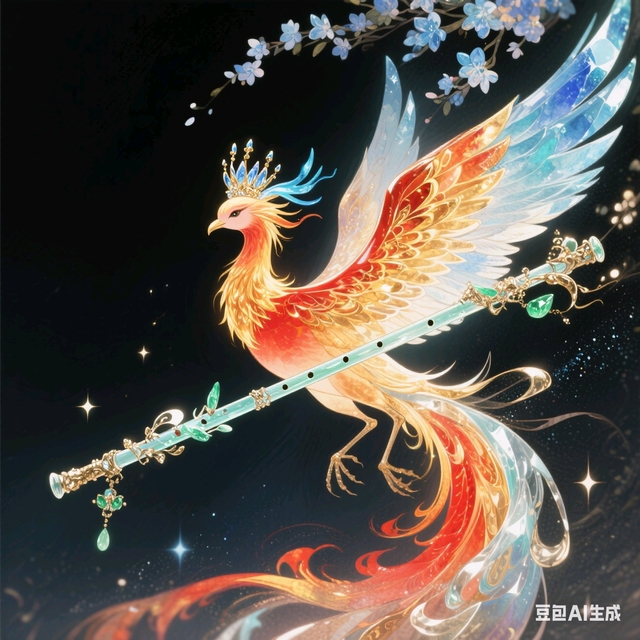 她慢慢靠近,目光扫过鸟巢内部,只见一只红金色的凤凰正静静地栖息其中。那双炯炯有神的眼睛望向她,周围的空气似乎因它的存在而变得炽热。