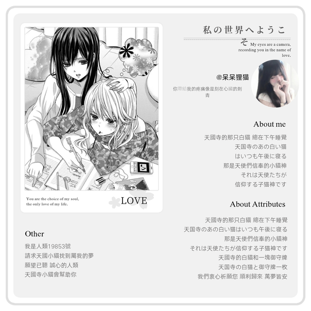 老婆们好,这里是属性图小铺子,仅有偿,关注店内新章节会随机掉落无偿练手哦