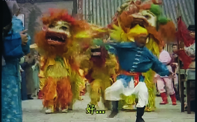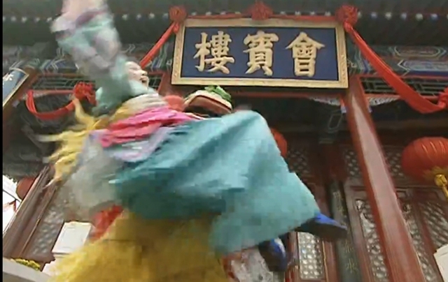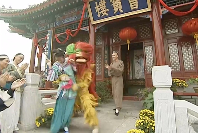 柳青哪有抱着一姑娘演的(说完便将抱着柳红的舞狮人的狮头摘了下来)