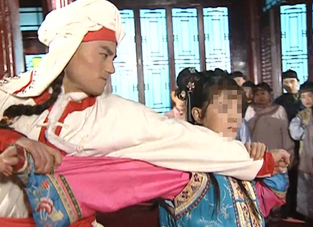 小燕子(不小心将菜碰到了蒙丹身上)