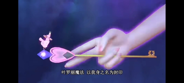 王默手中的法杖向曼多拉:神秘水晶魔法,听从灵犀之力的召唤啊,爱心之翼!