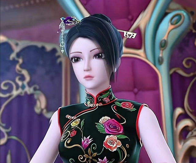 那是一位美丽动人的大姐姐,她身着一袭精致的黑色旗袍,旗袍上点缀着几朵娇艳欲滴的玫瑰花图案,仿佛在黑夜中绽放的花朵。她脚踩着一双黑色高跟鞋,每一步都显得优雅而自信。她的长发被精心地盘起,用一根精致的发簪固定,增添了一份古典的韵味。这位大姐姐的气质温婉而亲切,让人不禁想要亲近她