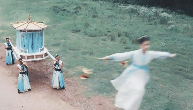 话落,白发仙纵身一跃,高举长剑,似乎打算一剑劈开轿子