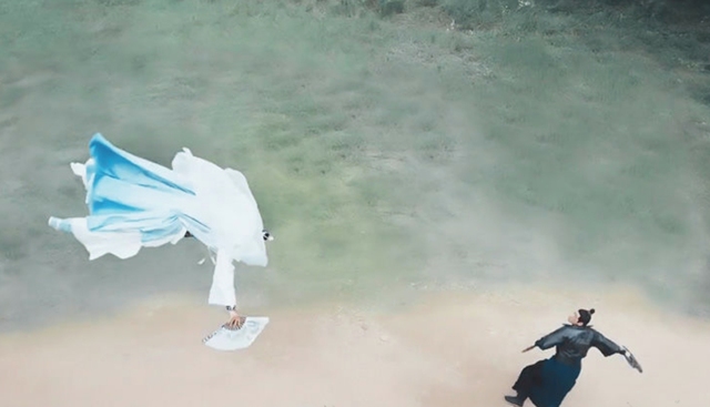 刀客猛地拔刀一跃,径直向灵素攻来,灵素同样腾空而起,身形如电般闪至刀客面前