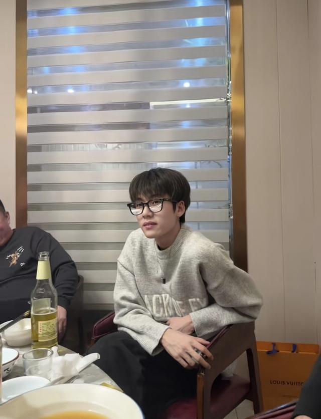 大家坐在餐桌前,高洋和庞博文灵魂走位,坐到了一起