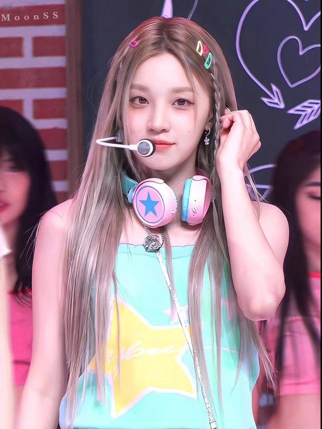 几首歌过后,许沐颜再次上场就是一身多巴胺配色,带着用来装饰的耳机的造型