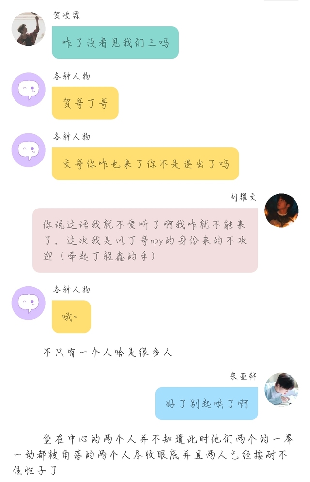 瓶头:潇雨嘉(杀手阁成员与宋亚轩贺峻霖关系还算好的)