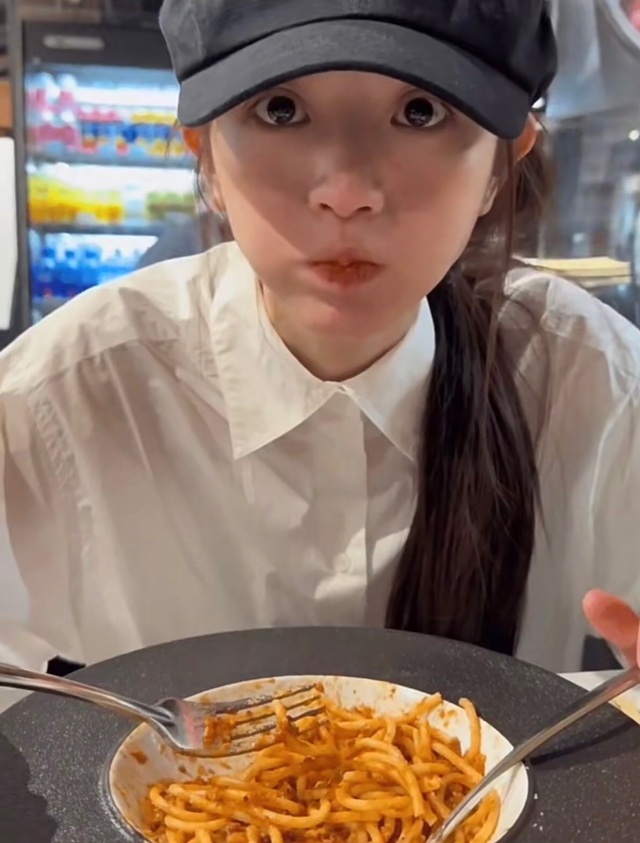 蒋文娴面吃了一半 嘴巴塞的鼓鼓囊囊的。