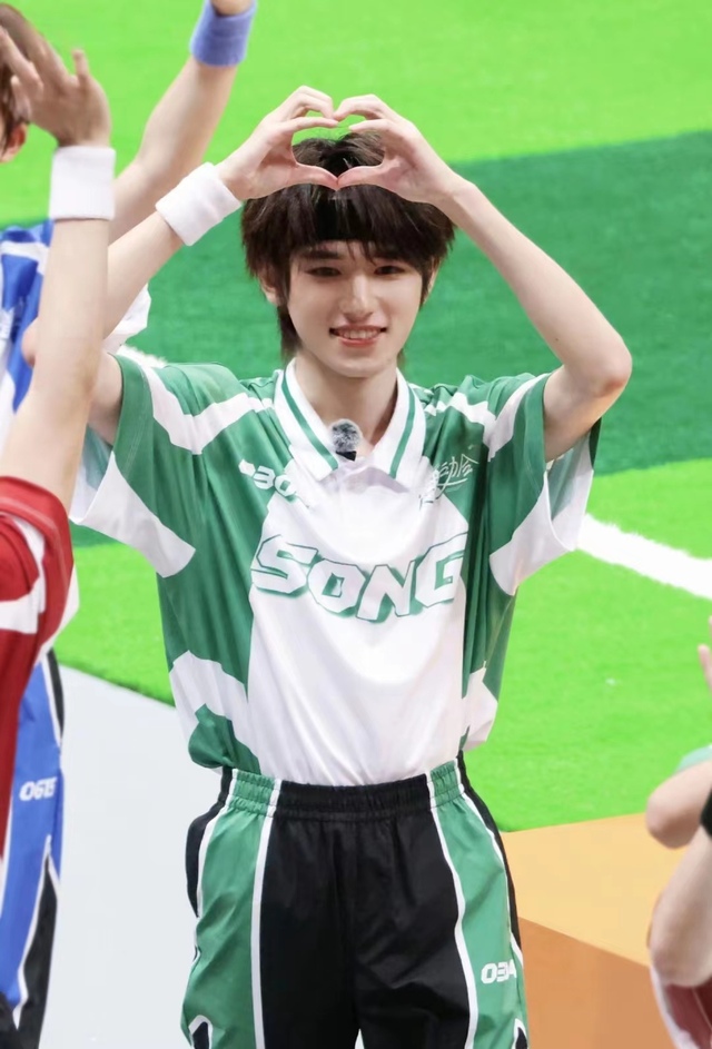 绿色队服格外的亮眼,宋亚轩笑的也是格外的甜。