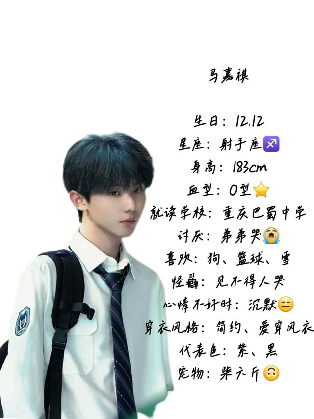 马嘉祺,丁程鑫叫他"阿祺",是个毋庸置疑的学霸,长期稳坐全校第一的宝座😎,父母离婚了,他跟着爸爸,有个同父异母的弟弟严浩翔,高中开学第一天就在校门口撞见了弟弟和丁程鑫打架😱。