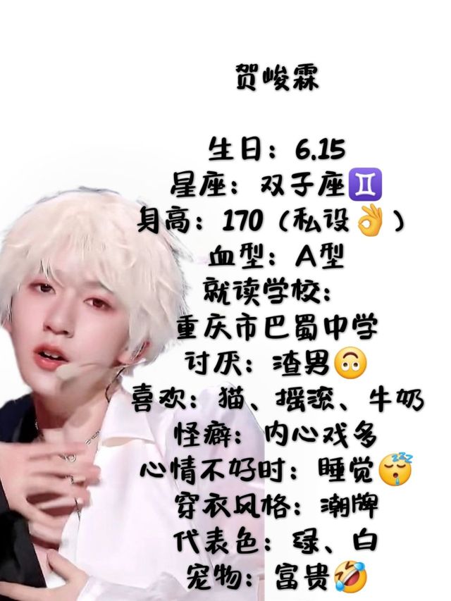 贺峻霖,小名“霖霖”,是个十足的“兄控”,和同父异母的哥哥长得很像😲,总是摆出一脸不耐烦的样子,父母离婚之后,妈妈立刻嫁给了有钱有势的后爸,他就是这场荒唐婚姻的产物,因此格外地叛逆,总是惹是生非😡。