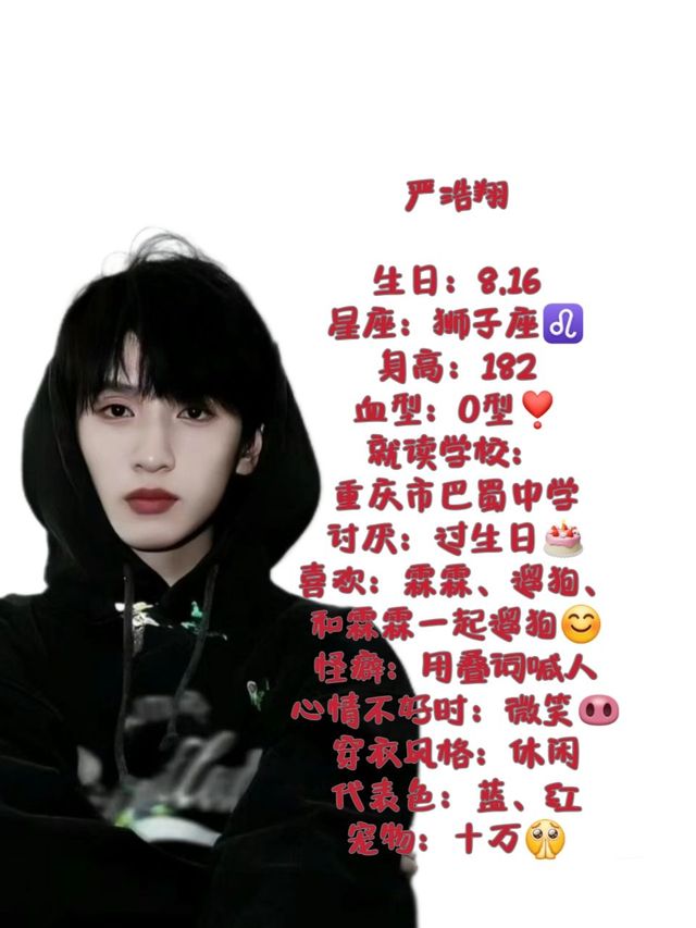严浩翔,丁程鑫叫他“好香”,是校草,拥有自己的粉丝后援会😍,和认识丁程鑫很久了,对于他来说最重要的就是他的宠物狗狗:十万🙂(私设),对他来说十万不单单是他的宠物,更是他的家人,贺峻霖帮他找到了走丢的十万🐶,因此和贺峻霖渐渐亲近了起来。