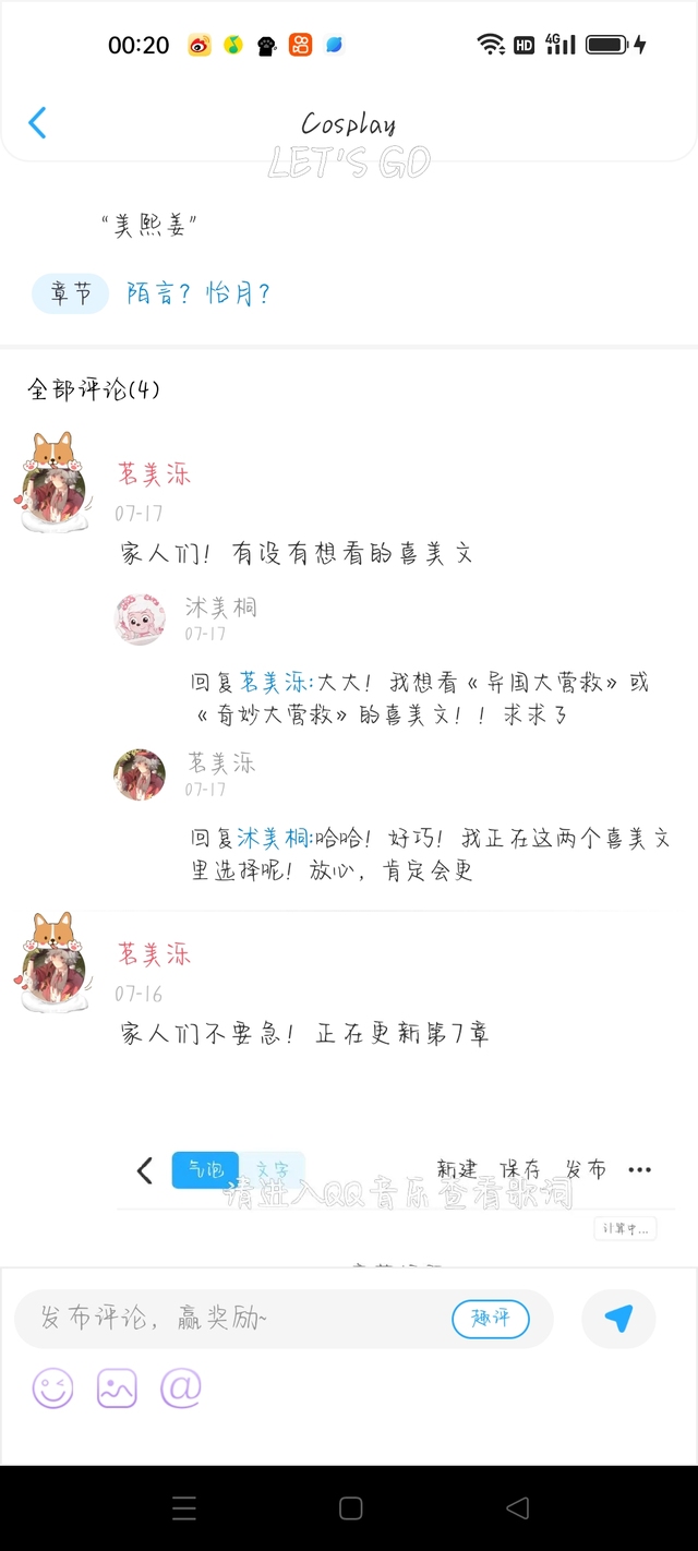 后来呢,我在我的另外一个作品上面发了关于新作品这个……后来有一个小粉丝告诉我,他想看《奇妙大营救》、《异国大营救》