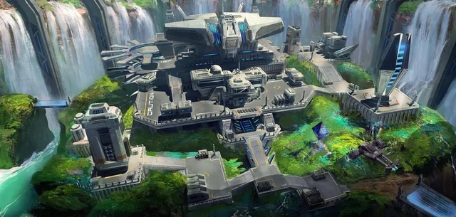 栅栏里凹下去的一圈围着瀑布,中间就是联邦分部的基地