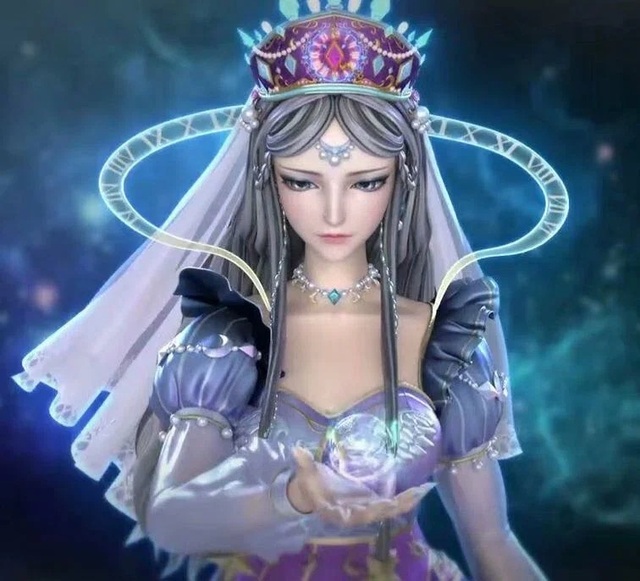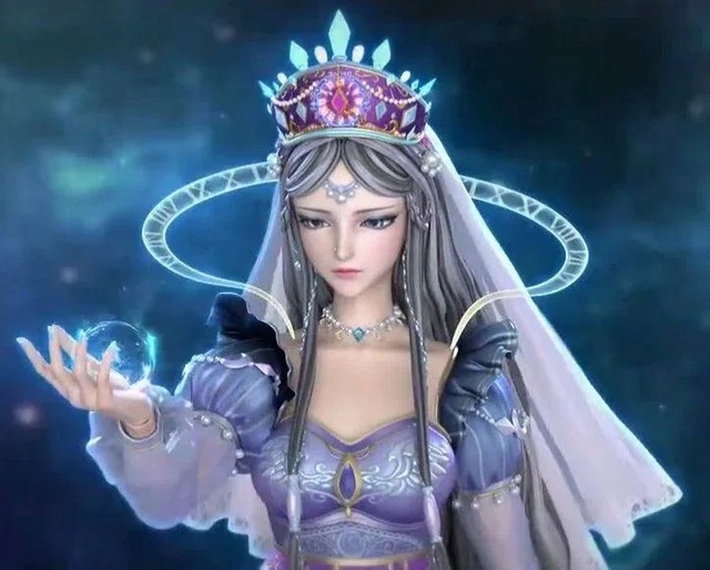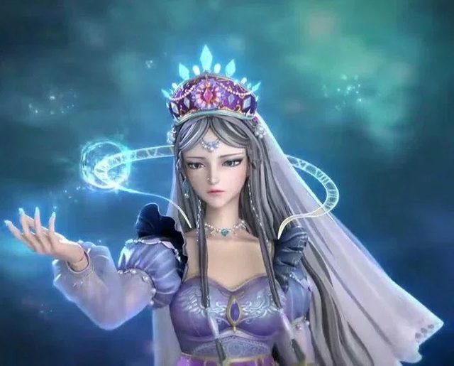 时希来到辛灵仙子身边双手放在辛灵仙子的肩上辛灵仙子的眼睛冒出了金色的光芒
