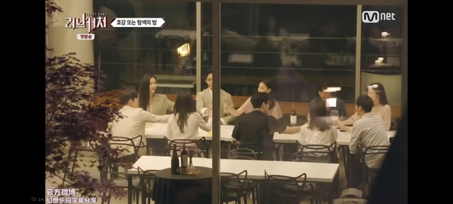 李载温起身给韩楚林让座,韩楚林坐在了李敏浩对面,李载温旁边,黄彩元坐在了李敏浩旁边,李载温的对面,金圣雅坐在了李载温另一边,高胜宇的对面,吴路傧坐在了金圣雅的另一边,黄兰坐在了吴路傧右边,看到大家都落座,金允熙选择了最后一个空位,高胜宇和李宏昌中间