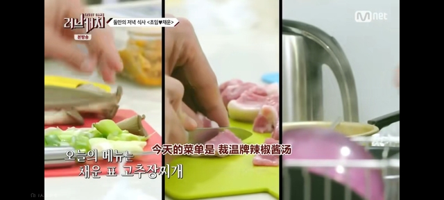 李载温换好衣服到厨房做辣椒酱汤