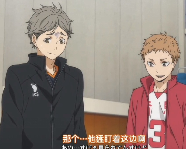 西谷小可爱死盯着夜久和suga这边