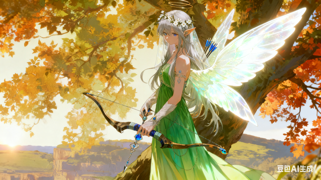 她的气息温柔,头带着花环头纱,尖尖的耳朵,微微弯曲的长长的发搭在身前。