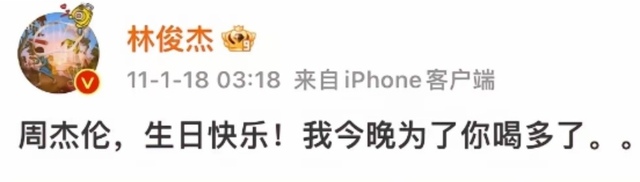 1.17凌晨11点,林俊杰正在纠结给周杰伦发什么生日祝福,好像确实是什么都发过了 ……