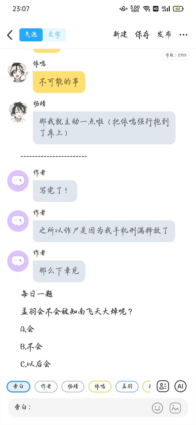 孟羽咦额……恶心死人啊!(跑走)