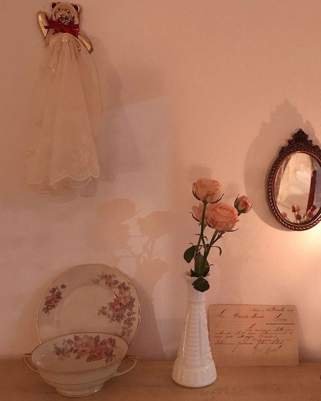 玫瑰色的墙纸散发出淡淡的花香,钉在上面的藤萝架更是开着好几朵娇嫩欲滴的粉玫瑰;餐具、桌椅、灯具无一不是玫瑰图案的装饰,端上来的餐品也常有玫瑰花瓣的点缀。