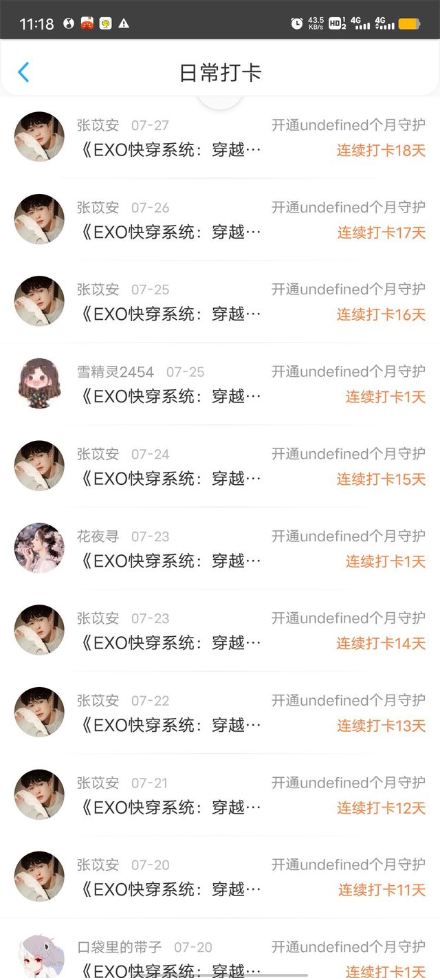 后面我登录的时候,总能看见苡安宝在连续的打卡。