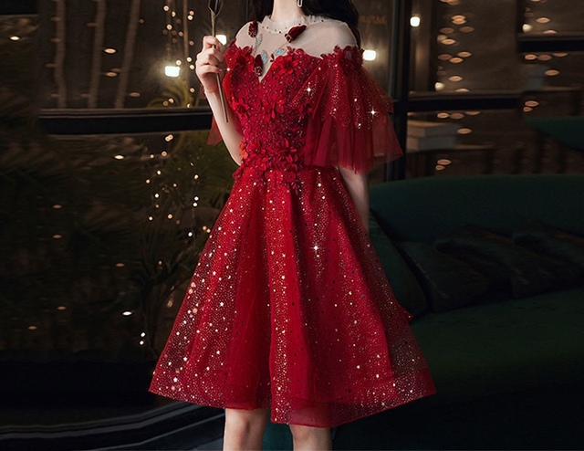 水晶灯碎成千万粒星子,跌进易念涵的红裙褶皱里。她攥着裙角站在玄关,薄纱袖笼住的小臂泛着瓷白,花瓣领下的肌肤若隐若现—这是刘耀文第一次见她穿礼服,黑眸里的惊艳几乎要漫出来。