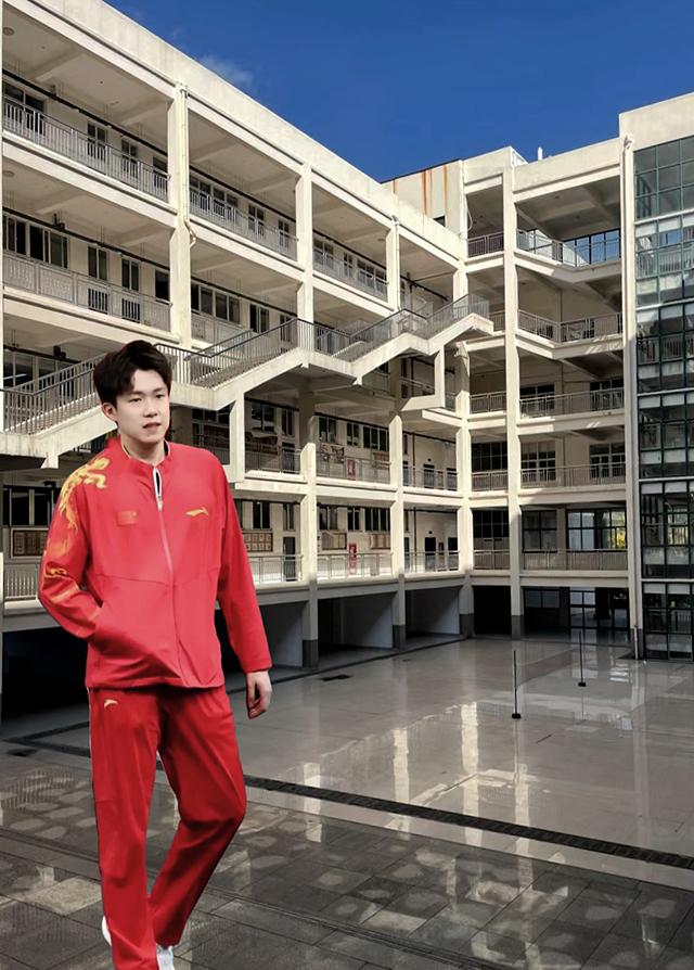 王楚钦和褚歌熙去了厕所换上中国队的队服,褚歌熙比较快换完后出来在台阶上坐着等王楚钦,打开了摄像机想录下也算记录自己的高中两年,毕竟那时的自己只顾着学习闯出成绩从没好好看过高中,而此时他闯入了镜头