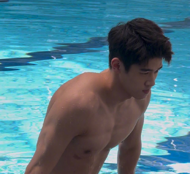 潘展乐拿了一瓶矿泉水,拧开递给她,给她找了一个位置坐下,便示意去换衣服了,再次出来时已经换上了游泳的装备。