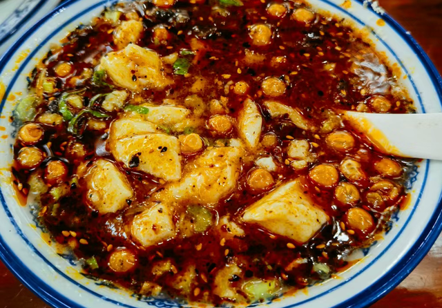 片刻后,捧着一碗麻辣豆花缓步走出。