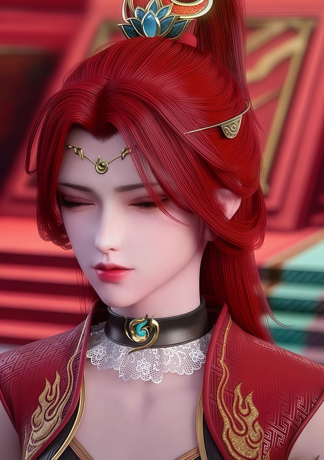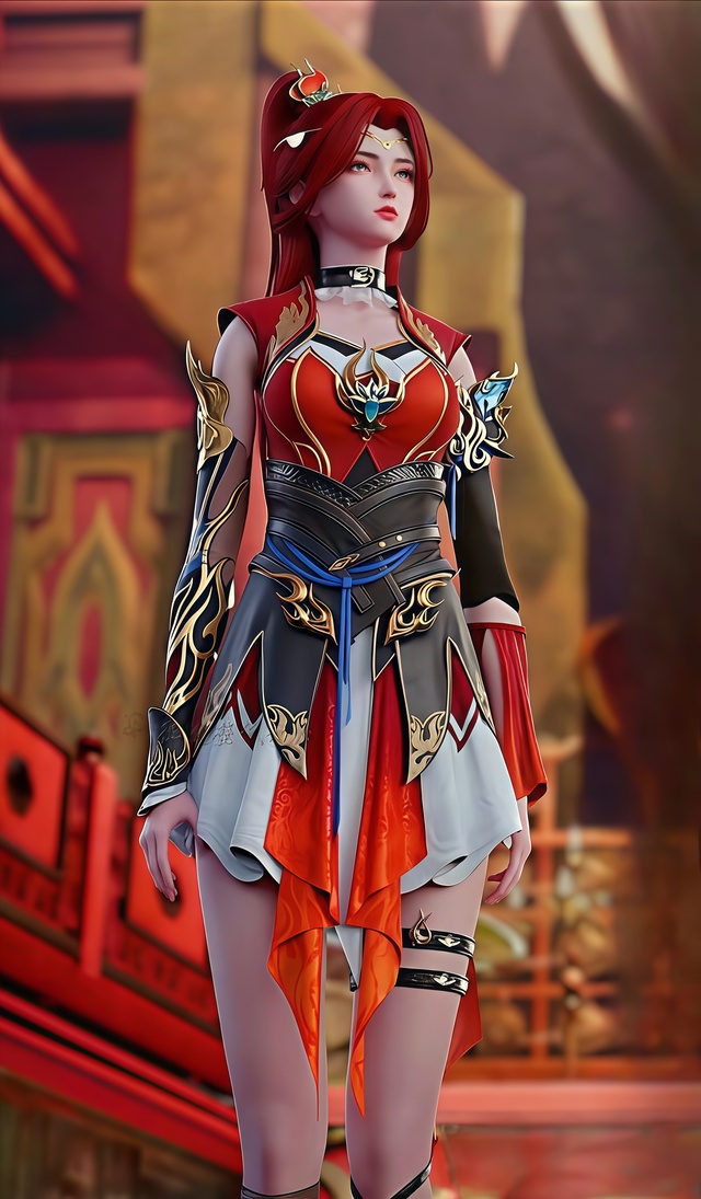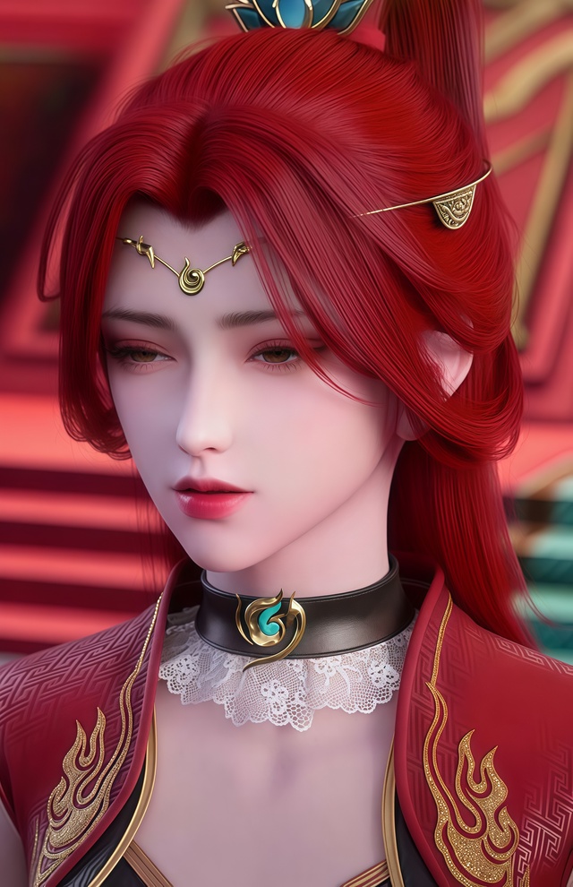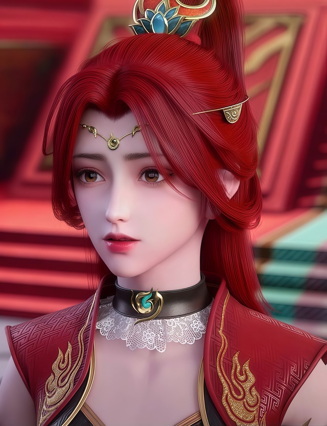 此时,焚炎谷内静谧如常,一道倩影悄然立于窗前,她眺望着远方,目光仿佛要穿透重重云雾。夕阳的余晖洒在她的身上,为她镀上一层温暖而又孤寂的金边,一头红发绚丽又炙热。