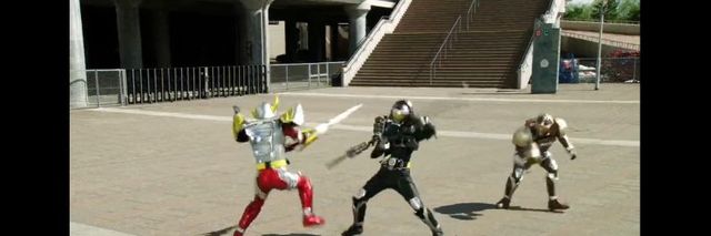葛叶纮汰变身铠甲铠武加入战斗中,这个时候巴隆联合队伍有两名队员不知道从哪里拿到了驱动器变身铠甲骑士,突然叛变攻击戒斗