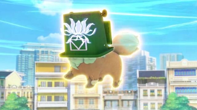风松狮为了跑去捡篮球,跳过了投篮筐,不小心摔到了垃圾桶那儿,结果垃圾桶盖在了他的头上