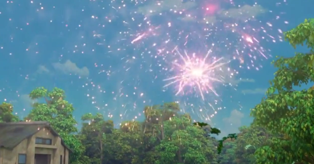 火球飞到空中绽放成了烟花