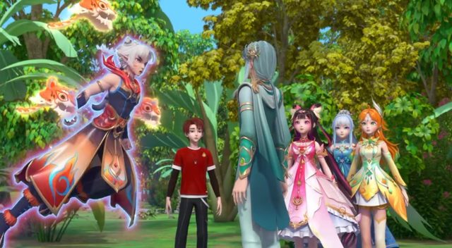 巨大的火球朝着他们飞去,东方桃子见状拿起笔记召唤出精灵