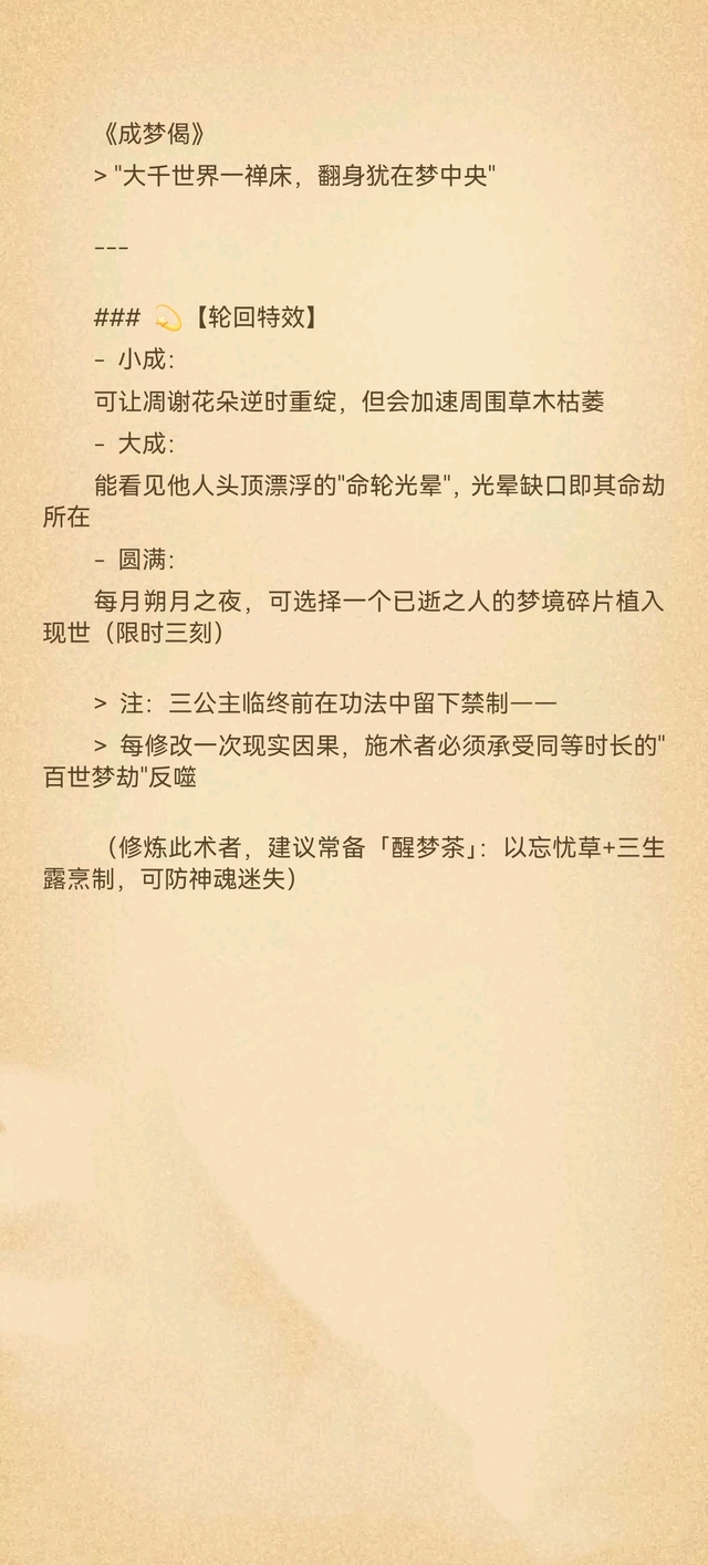 系统“此术修至大成时,可织就覆盖三界的【庄周梦网】,当年皇梦族长便是用此术,将神魔大战化作南柯一梦...”