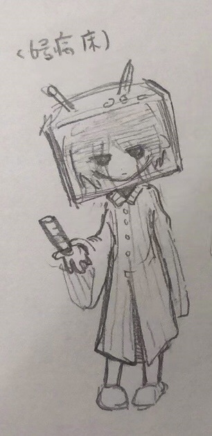 还有我这里可能没画清楚,小女孩是短发,穿着异常宽大的病号服,脚上穿的是拖鞋