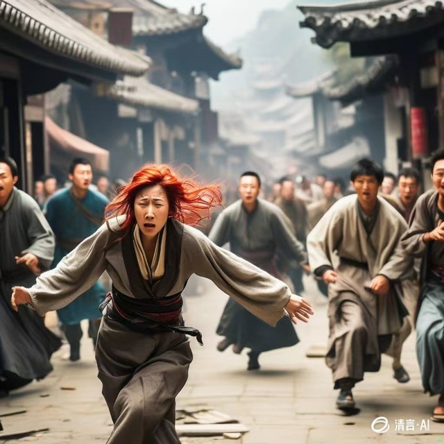 她的长发在身后飘扬,衣袂在风中猎猎作响,她的身影在昏暗的街道上迅速穿梭,目标只有一个——那家熟悉的客栈,母亲可能还在那里等她。